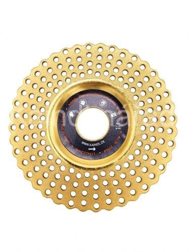 Kotouč do vrtačky s nanesenou vrstvou diamantu určený na ostření veškerého nářadí. Je schopen brousit jak veškeré oceli, HSS, tvrdokovy, sklo, keramiku tak i minerály atd. Kotouč je děrován, takže je při roztočení přes něj vidět. (zespodu brousíte a shora vidíte přesně ostřenou plochu. takže odpadá problém s podbrusem při ostření vrtáku a dalších nástrojů. Slouží i k broušení zubů na kotoučových pilách. Při zanesení prachem je k čištění vhodné používat čistící gumu.